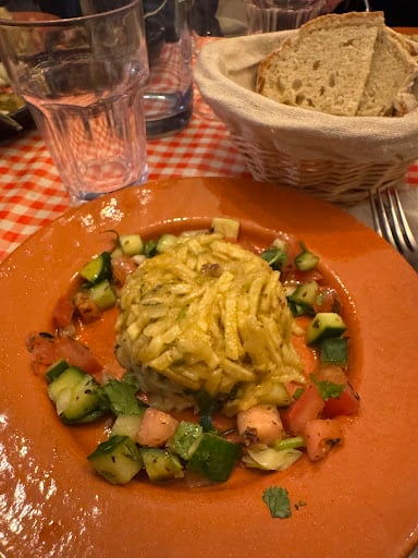 My favorite Portuguese dish is a Bitoque: steak with a fried egg served on top with a side of french fries and rice