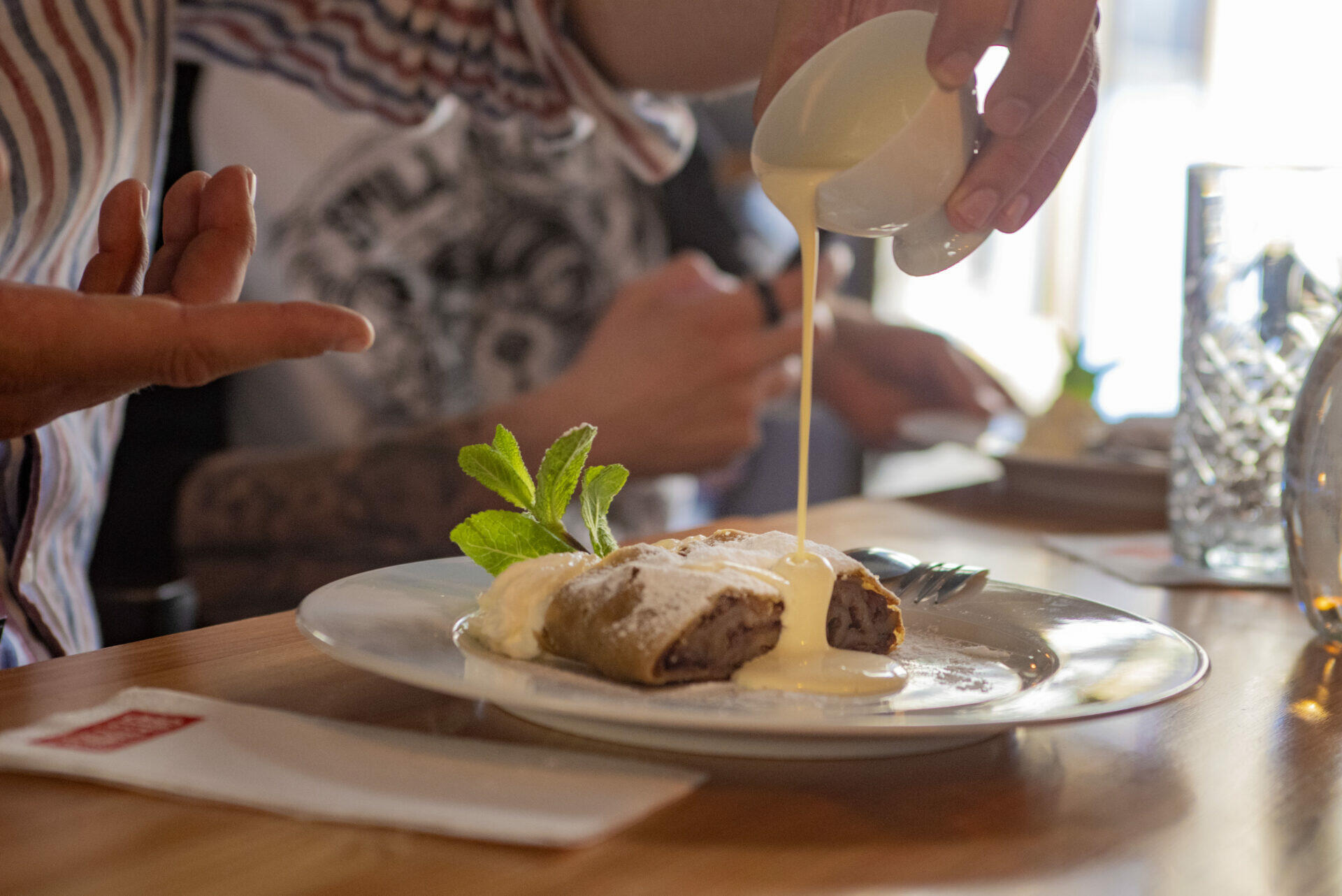 Finish with legendary apple strudel and custard for a grand finale 🎆